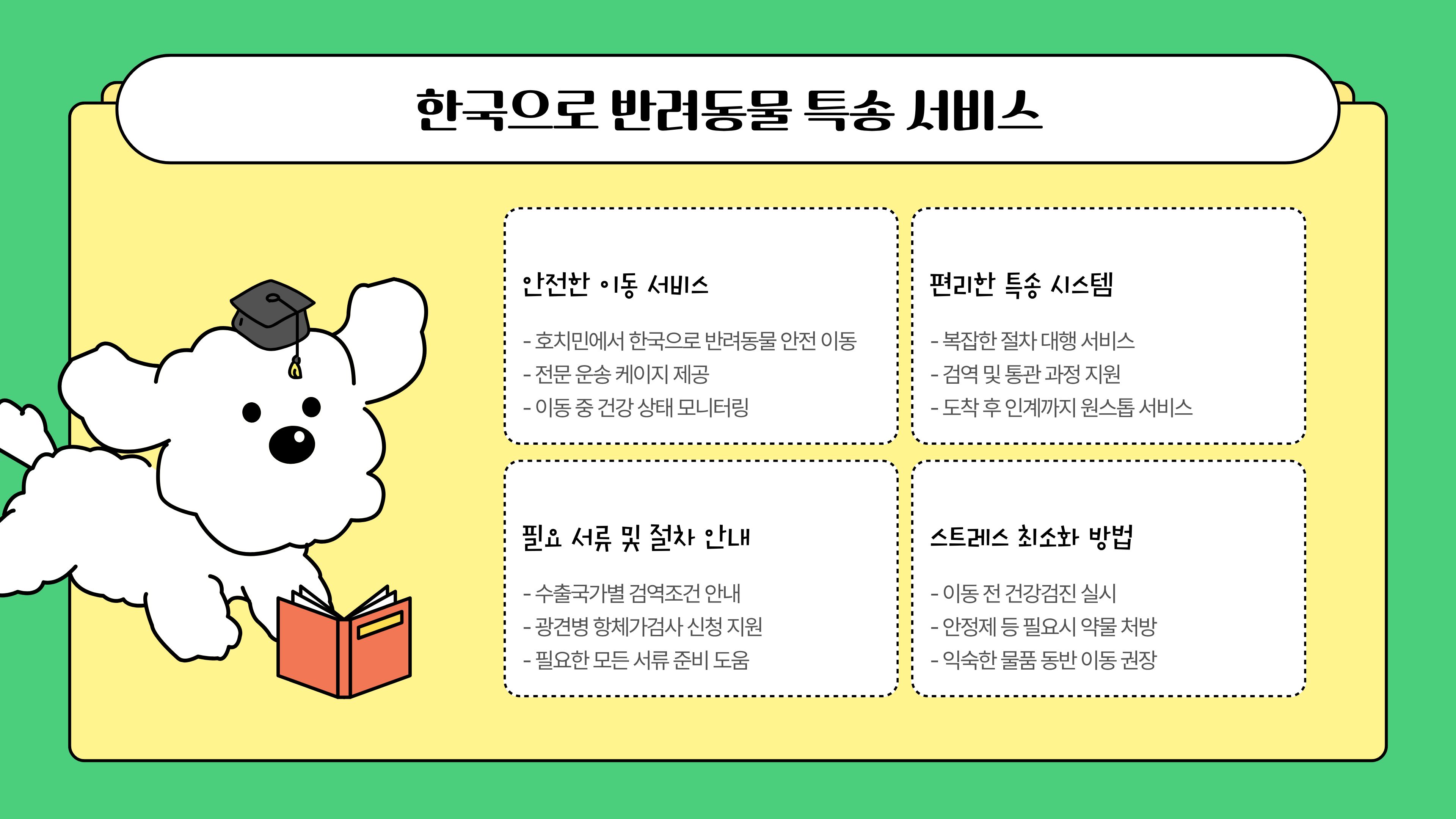 호치민에서 한국으로 반려동물을 데려가야 하는 경우도 걱정하지 마세요.