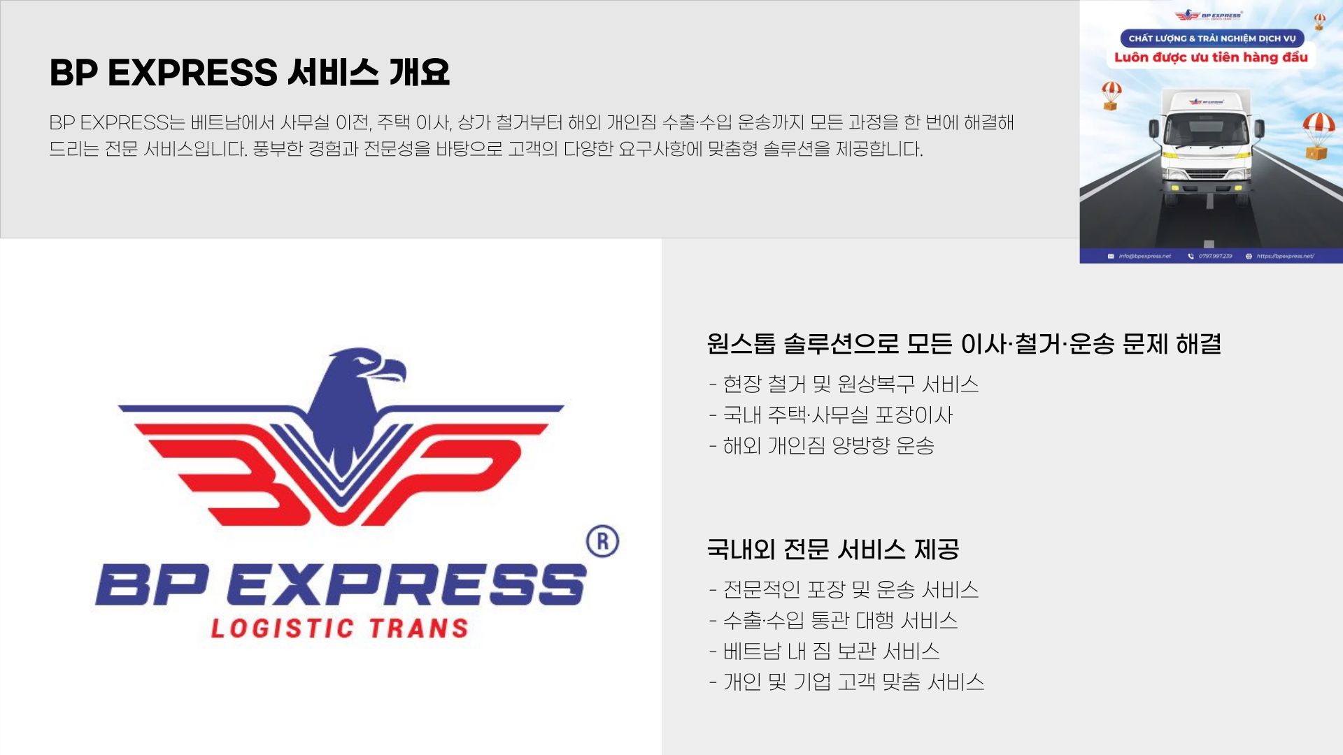 베트남 이사·철거·해외 개인짐 운송 전문 BP EXPRESS